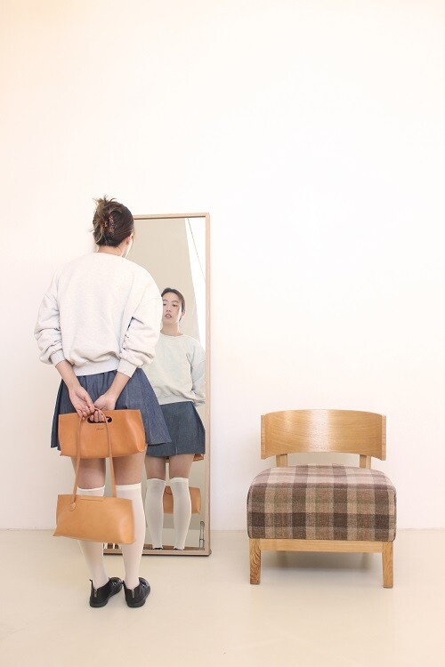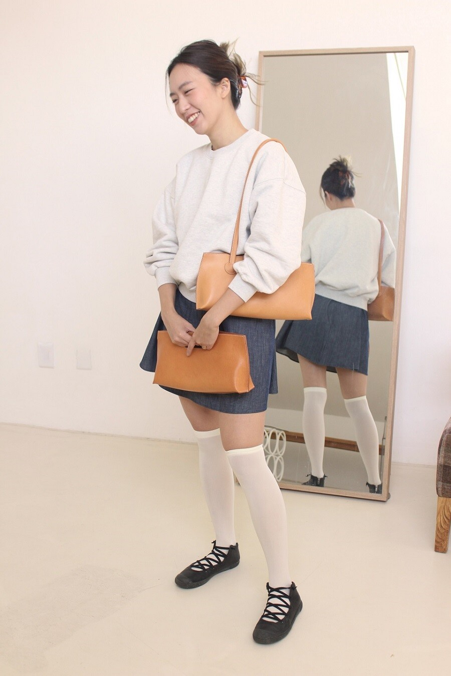 바게트 처럼 길쭉한 바디 라인과 귀여운 손잡이가 포인트인 핸드백입니다.
