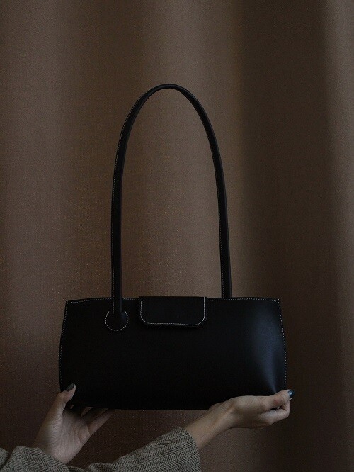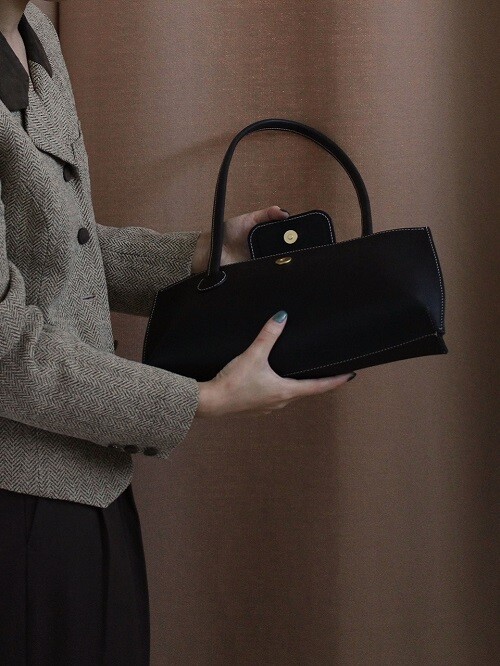 빠삐에 바게트 백의 기본 라인에 스트랩과 귀여운 여닫이가 추가 된 디자인으로